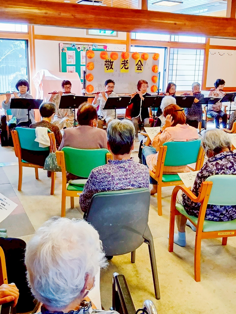 敬老会 – 慰問(秋の篠笛コンサート 演奏者:山口流みやびの会・梅 様)
